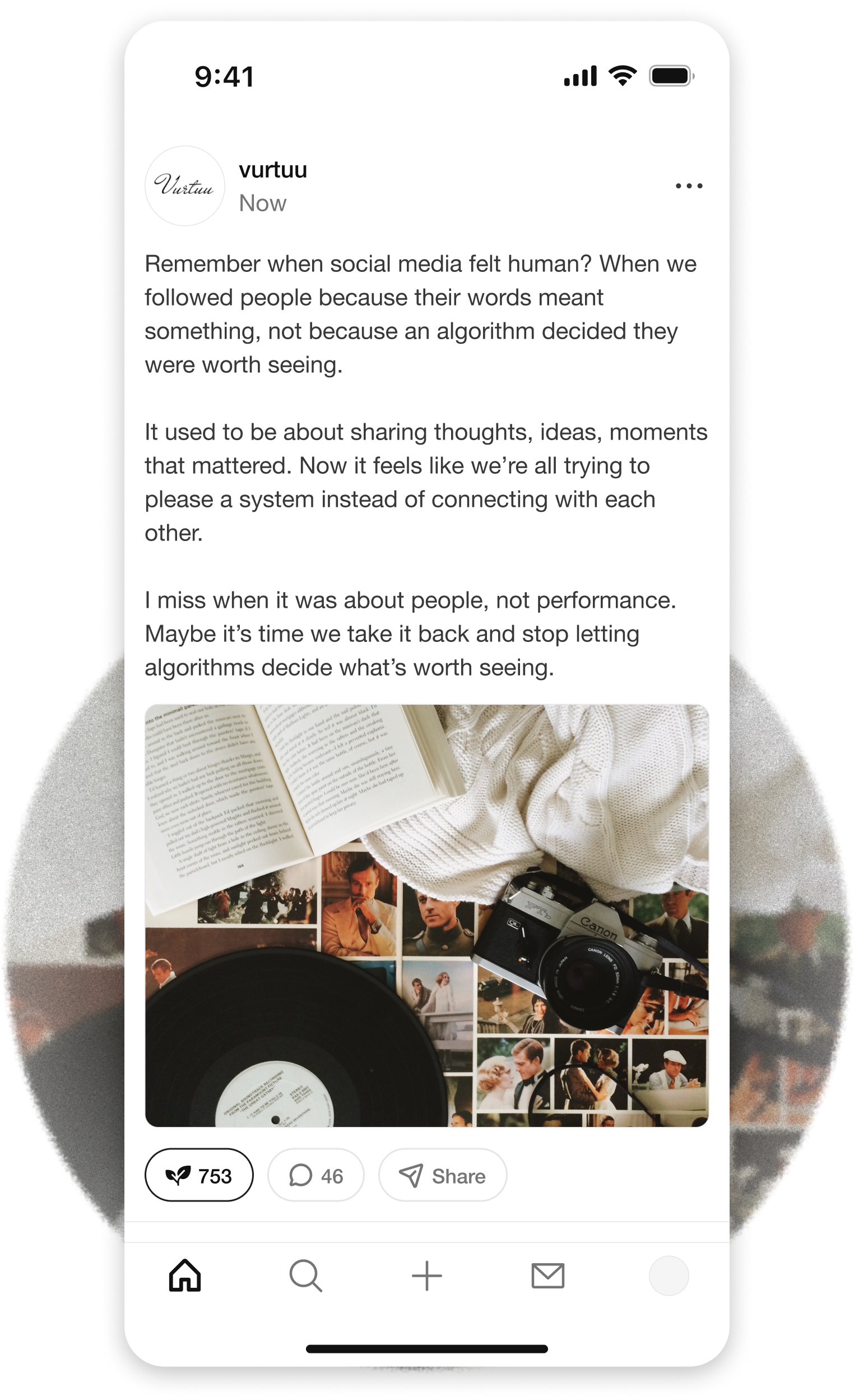 Vurtuu is a social space created to cut through noise, AI clutter, and toxicity bringing back authenticity, meaning, and intention online.